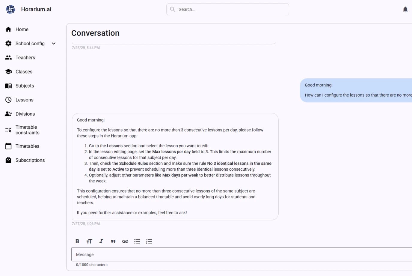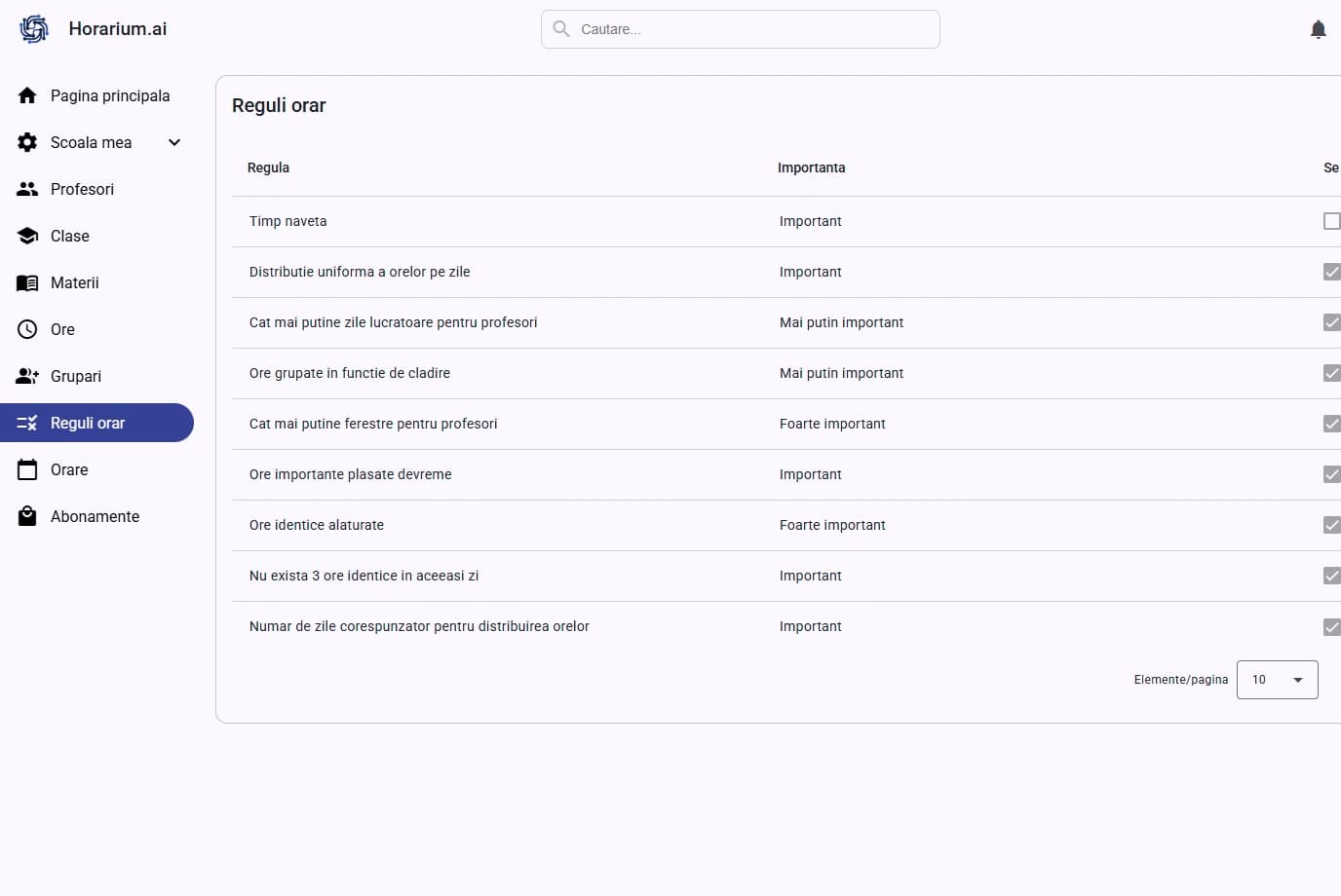 Interfața noastră intuitivă vă facilitează introducerea rapidă a datelor și oferă flexibilitate în personalizarea orarelor conform cerințelor dumneavoastră.